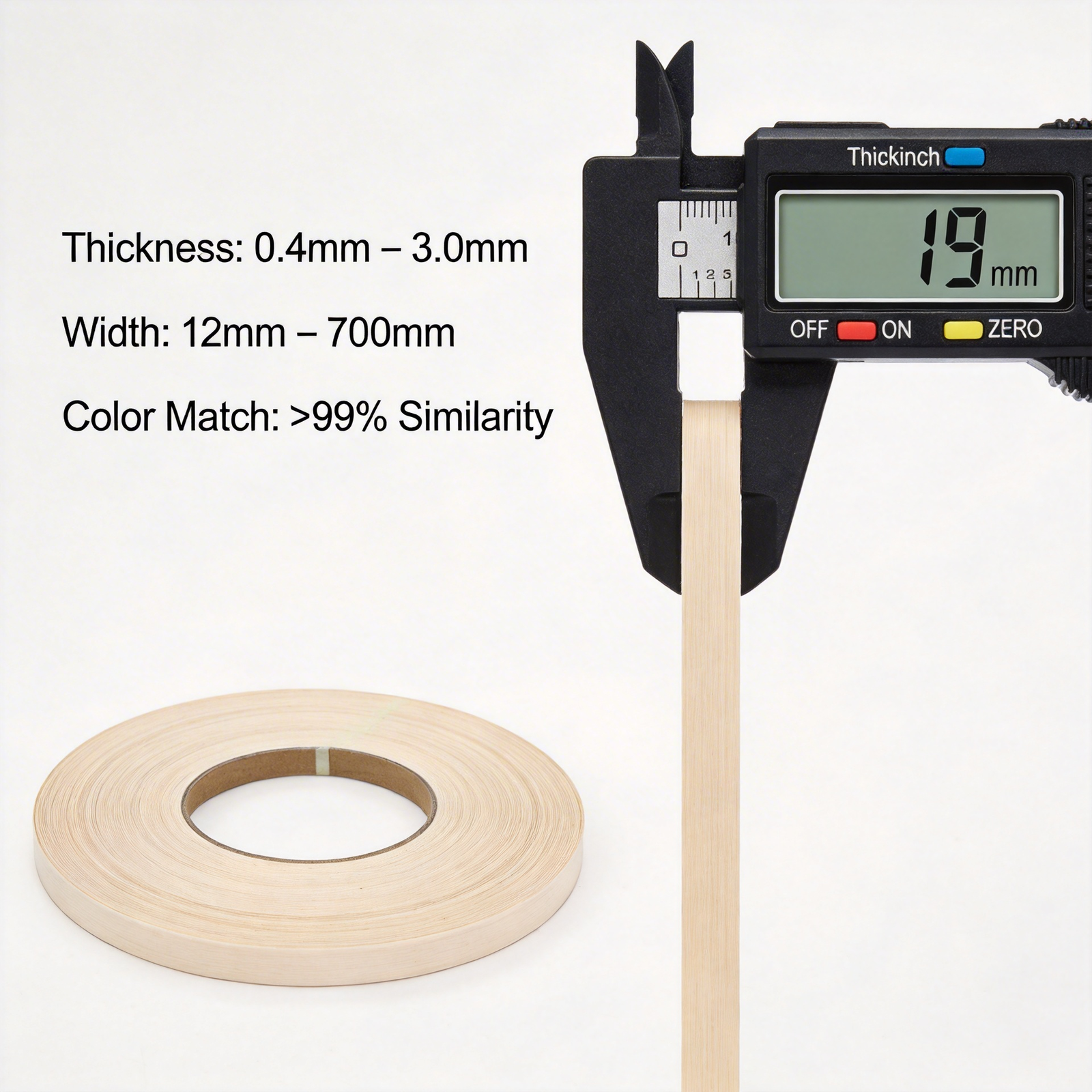 Edge banding slitting and rewinding process - stable width and thickness control